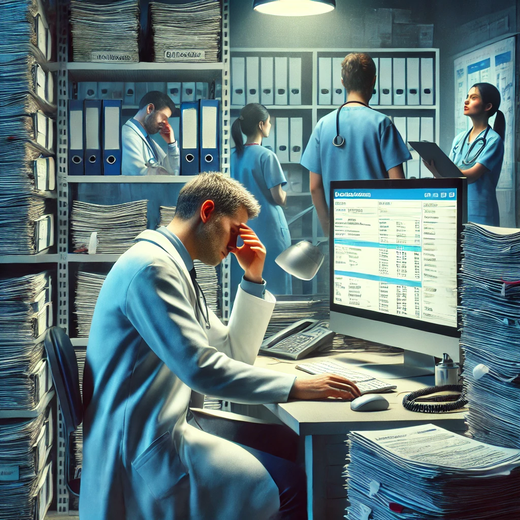 Figura. Representación de la sobrecarga administrativa (creado con DALL-E 3)