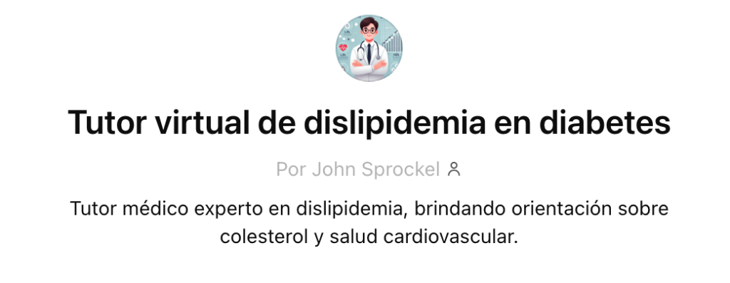 Tutor médico experto en dislipidemia, brindando orientación sobre colesterol y salud cardiovascular.